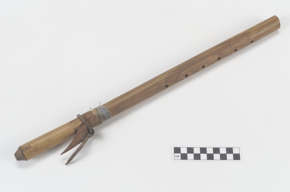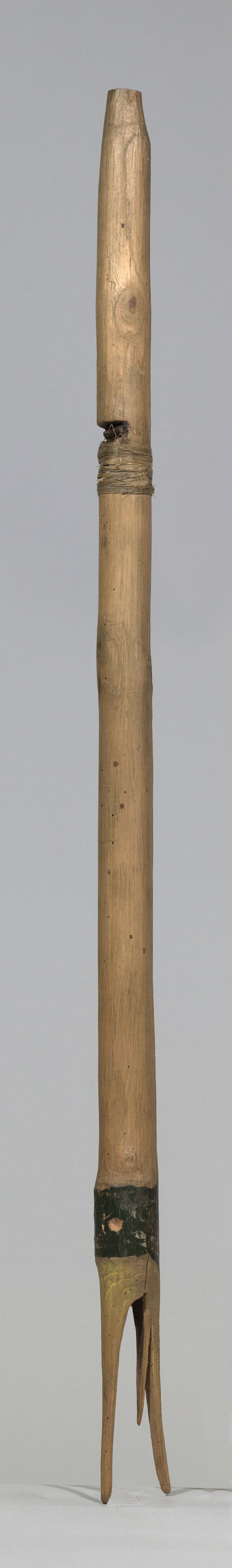Materials: Bamboo, wood, hide thong/babiche, lead, sinew1